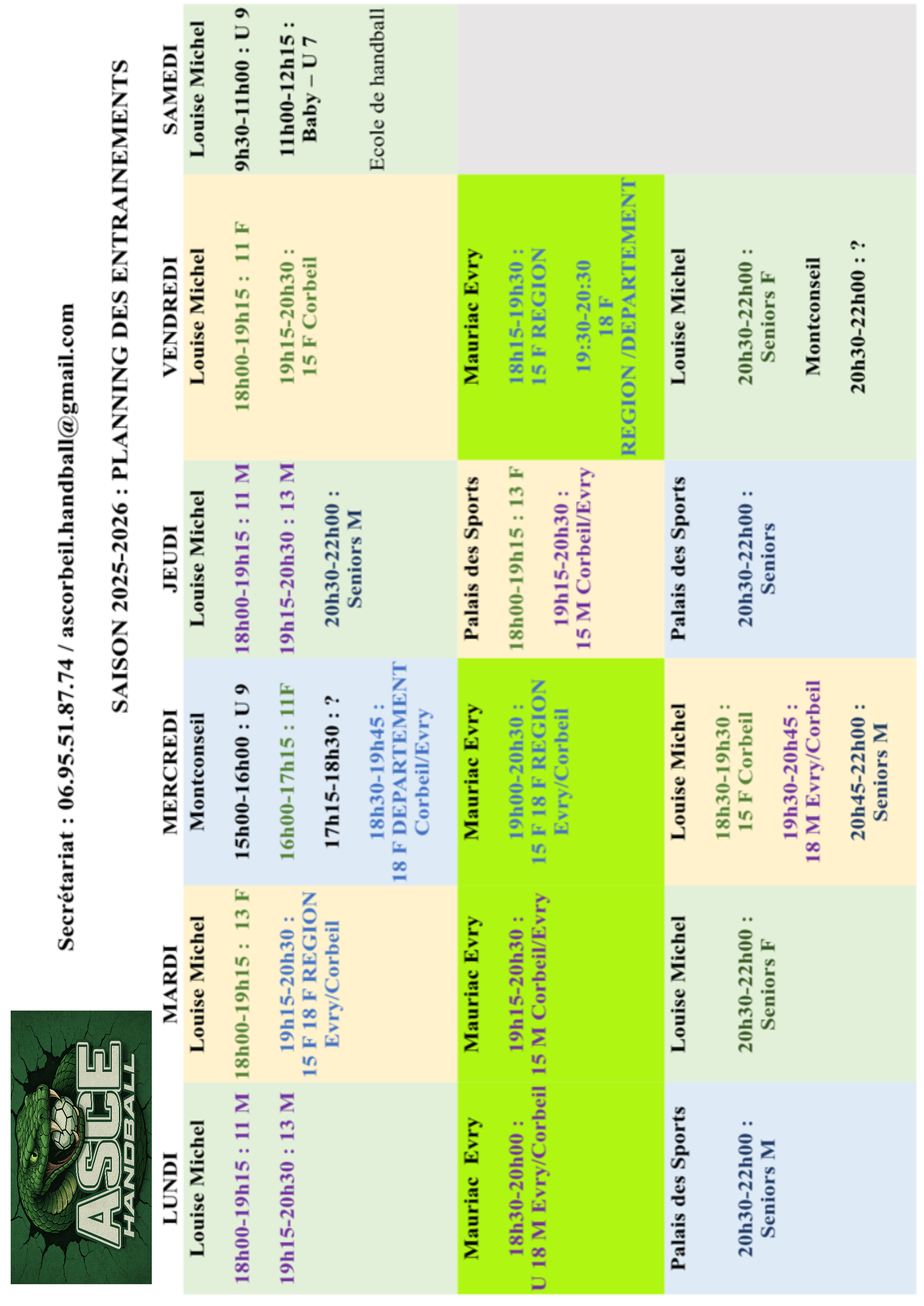 Planning entraînement